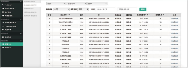 HFS-3600結合地理信息,可對 HFS-3600 上傳的分鐘級的海量監測數據進行可視化展示,同時兼備國家站的數據展示,生動形象地展示出空氣質量的實時變化趨勢和污染分布情況。